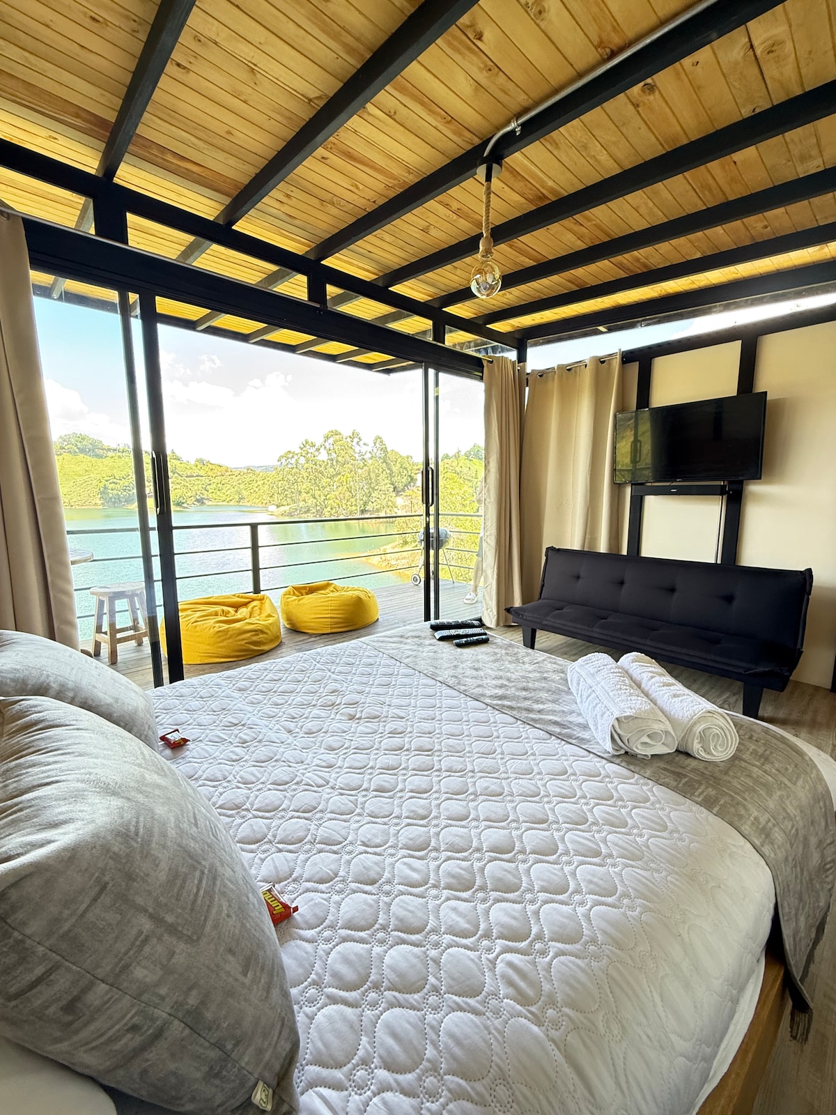 ¡Bienvenido a nuestra cabaña flotante! Ofrecemos una experiencia única e inolvidable con vistas impresionantes al agua y las montañas. Perfecto para una escapada romántica o una aventura en solitario, nuestra cabaña cuenta con una cama cómoda, baño privado, una terraza y kayak para deporte al exterior. Deja que la magia del embalse de Guatapé se convierta en tu hogar flotante y descubre un lugar donde la tranquilidad y el lujo se unen para ofrecerte una experiencia única en la vida.