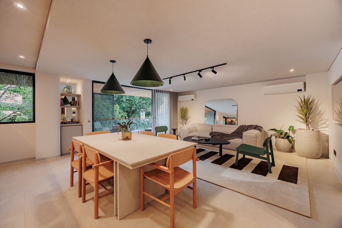 Visiškai naujas pastatas (viešbutis „Urban Studios“) ir prabangus butas, esantis geriausiame El Poblado (El Tesoro) sektoriuje, puikiai tinka ieškant ramios ir gražios erdvės. - Prabangus interjero dizainas, baldai - Įspūdingi vaizdai iš svetainės, miegamojo ir biuro - Visa skalbyklė ir džiovyklė - oro kondicionierius miegamajame - 55¨išmanieji televizoriai LG - 200 GB+ Wi-Fi - Šildomas baseinas ir sūkurinė vonia - garinė pirtis - Pilnai įrengta moderni sporto salė - apsauga visą parą