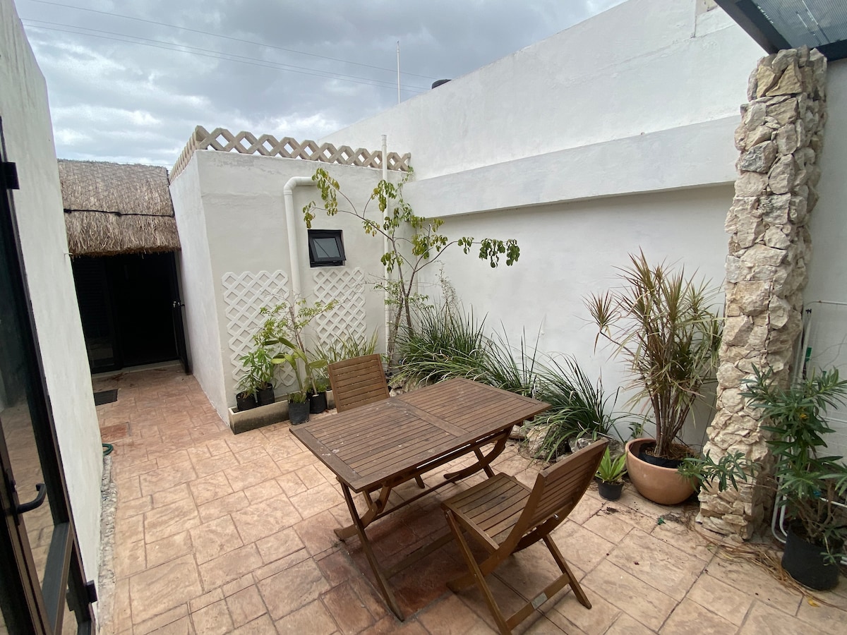 Atraskite Jukatano šilumą šiame jaukiame bute su atskiru kambariu, esančiu už kelių metrų nuo Hacienda Anicabil. Idealiai tinka atsipalaiduoti, atsipalaiduoti, dirbti ar gyventi su majų kultūra su visu šiuolaikiniu komfortu. Įeina greitas internetas, oro kondicionierius, mikrobangų krosnelė, dvigulė lova, šaldytuvas, trintuvas, viryklė ir virtuvės reikmenys. Jame yra atskiras koridorius, į kurį galima patekti, rankų plovimo zona ir atskira prieiga svečiui.