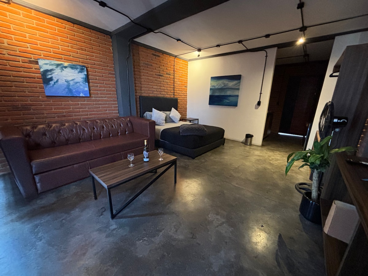 loftas su visomis privačiomis paslaugomis, automobilių stovėjimo aikštelė (1 patalpoje), vonios kambarys, virtuvė, židinys, sofa-lova, rašomasis stalas, dvigulė lova, spinta. gera vieta, 5 minutė iki prekybos centrų, bulvarų(Bernardo Quintana, Universitetas, vasario 5 d.), restoranai, bankai, CrossFit, sporto salė, parkai, takai, mėsainiai, maisto sunkvežimiai,ekologiški gatvės turgūs, prekybos centrai. puikiai tinka vadovams, poilsiui. jame yra lauko stalas po gvajavos medžiu ir yra granatų, pvz., kepsninė