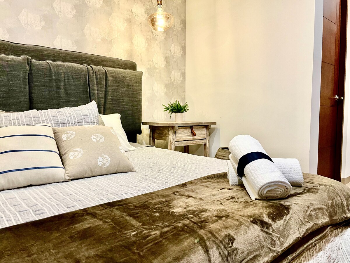 Puikiai tinka ilgoms viešnagėms arba nuotoliniam darbui. Jaukus ir funkcionalus butas pačioje miesto širdyje, pilnai įrengtas ir su visais būtiniausiais patogumais. Įsikūręs saugioje, ramioje vietoje su lengva prieiga prie pagrindinių kelių, parduotuvių, restoranų ir pramogų. 📍 Vieta: 1,4 km (20 min. pėsčiomis) iki miesto centro ir San Markoso mugės. 🚗 Važiavimo atstumai (min.): Downtown 8 • Fair 7 • Isla San Marcos 8 • Bus Station 7 • Airport 28 Užsisakykite dabar ir mėgaukitės puikia viešnage!