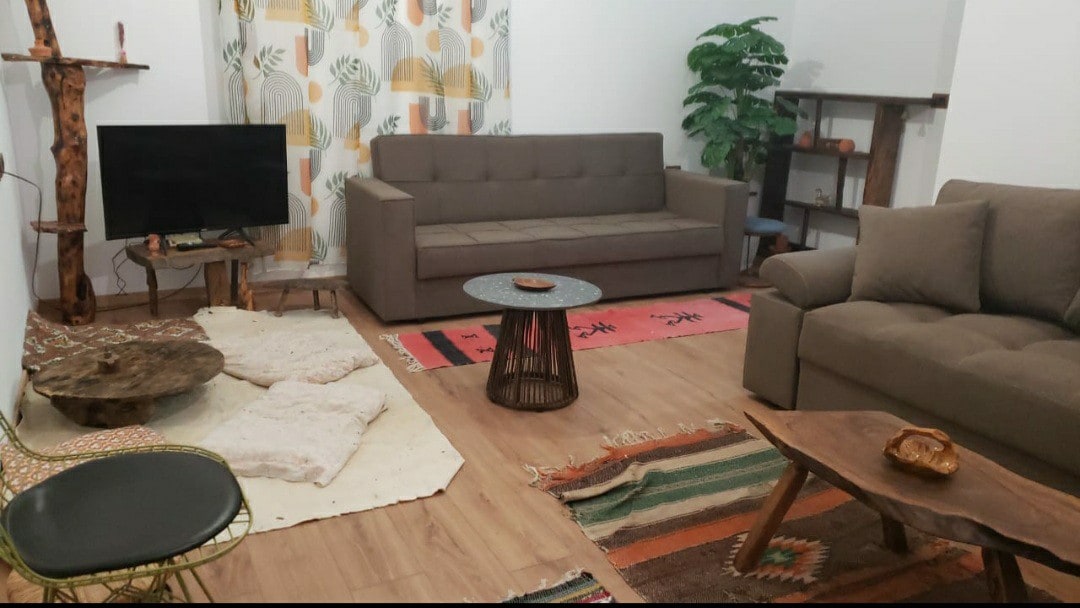 A cozy and fully equipped apartment ideal for families, couples, or small groups. The space includes a kitchen, comfortable sofas that convert into extra beds, a relaxing bedroom with two single beds, and a balcony with a beautiful view over the city and river. Located on a quiet hilltop in Librazhd, the apartment is close to Shebenik National Park, making it perfect for nature lovers, hikers, and travelers seeking comfort and peace.