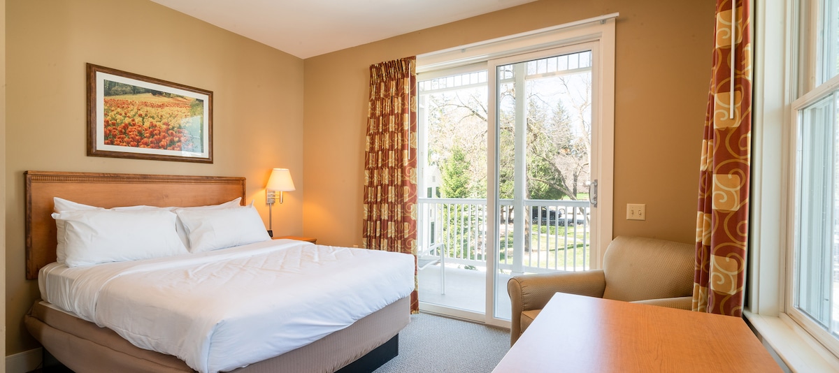 Sweet & Simple Boutique Hotel kambarys su šešėliniu vaizdu į ežerą, vos už kelių žingsnių nuo istorinio Elkhart ežero. Į jūsų viešnagę įeina prieiga prie paplūdimio ir atpalaiduojanti, pusiau privati terasa su vaizdu į ežerą. Erdvėje yra du gretimi kambariai, kad būtų užtikrintas didesnis privatumas, vienas didelis vonios kambarys (dušas/vonia), klasikinė Kohler įranga ir daug rankšluosčių bei tualeto reikmenų. NAUJI Sealy čiužiniai. Kambaryje taip pat yra nedidelis šaldytuvas, Keurig kavos virimo aparatas ir pusryčių barai. Įskaičiuota 1 automobilio stovėjimo vieta privačiame sklype