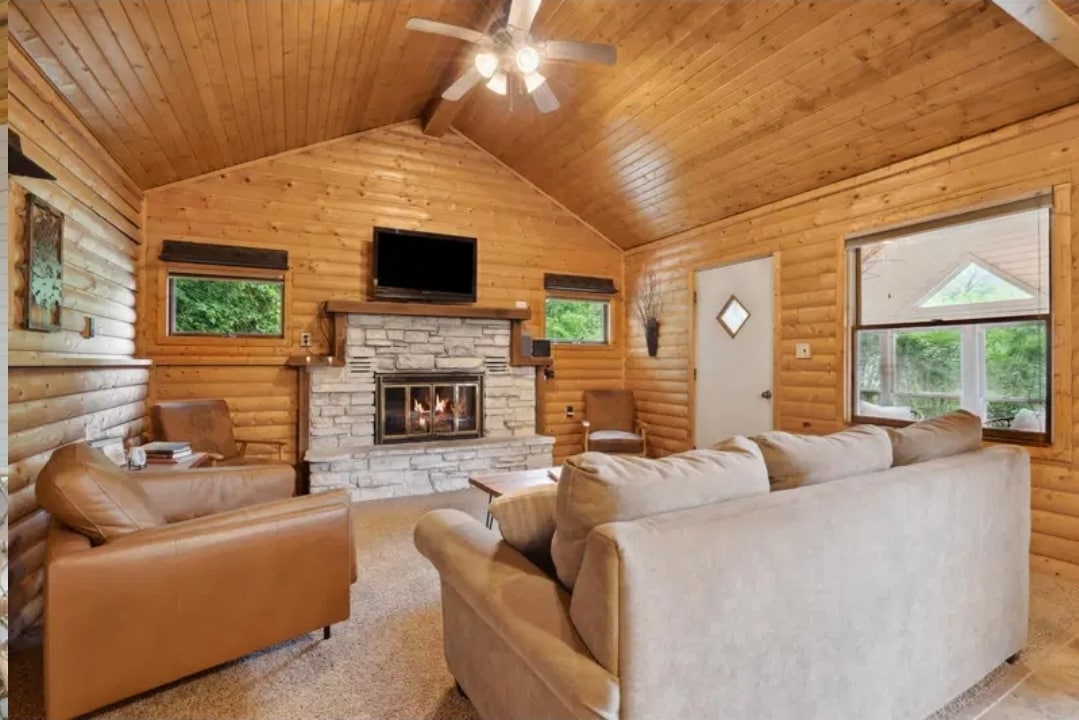 Rąstinė trobelė buvo pastatyta kaip vieta atsipalaiduoti, atsipalaiduoti ir tikrai atjungti. Įsikūrusi tarp 15 akrų kalvų, trobelė gali būti vieta, kurioje galima pasimėgauti ir skaityti tris romanus, arba namų bazė žygiams, dviračiams ir gamtos grąžinimui į savo gyvenimą. Informuojame, kad nėra televizoriaus ir tai yra dėl geros priežasties. Gaminkite, gerkite, valgykite, žaiskite, atsipalaiduokite ir atsipalaiduokite. Pabuskite su paukščių dainomis ir klausykitės pelėdų naktį, kol šildotės prie laužo.