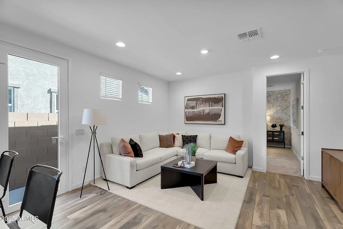 Mūsų būstas, įsikūręs ramiame rajone, yra šiuolaikiškas 2 miegamųjų, 2 vonios kambarių butas, žadantis komfortą, stilių ir visus patogumus, reikalingus įsimintinai viešnagei. Nesvarbu, ar esate mieste verslo, ar pramogų tikslais, šis apartamentas sukurtas taip, kad būtų jūsų asmeninis poilsis pačioje Arizonos širdyje. Suprantame, kad augintiniai yra šeima. Todėl sveikiname jūsų keturkojus draugus.