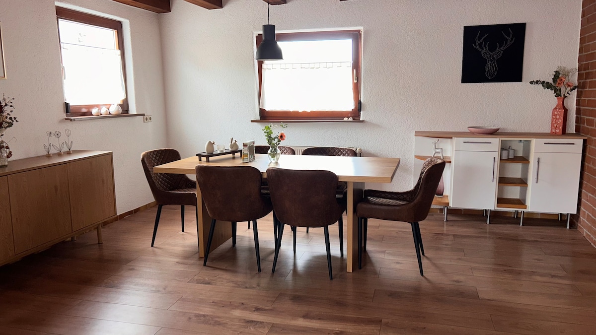 Išskirtinis modernaus stiliaus būstas! Puikiai tinka vienišiams ar poroms - mėgaukitės ramybe ir mėgaukitės laisvalaikiu. - Slidinėjimas, žygiai pėsčiomis, dviračiai, žygiai pėsčiomis ir dar daugiau - Neckar ir Black Forest viršūnės tiesiai už durų - Kūno rengyba ir sveikatingumas: pirtis, svarmenys, HulaHoop, 2 kalnų dviračiai - Pilnai įrengta virtuvė su visais papuošimais. - Puikus pietvakarių saulėtas balkonas - Poilsio zona (poilsio zona arba nuotolinis darbas) - Grindinis šildymas su jaukia ąžuolinės medienos parketo grindimis - Nespresso aparatas - eCharging Wallbox