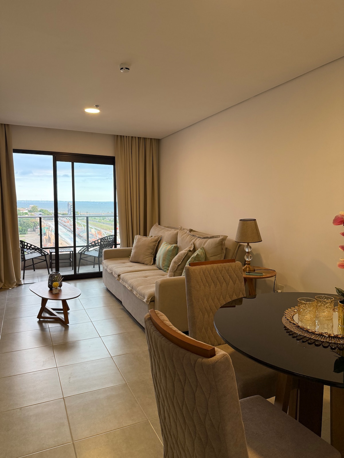 Butas su balkonu, iš kurio atsiveria vaizdas į upę, ir puikia vieta!📍. Pasivaikščiokite iki Costanera, Playa San Jose🏖️, restoranų🍴 ir parduotuvių Costanera🛍️. Pagrindinis kambarys su dvigule lova🛏️, svetainė su sofa-lova (2,10 x 0,95 x 0,92)🛋️, valgomasis, integruota virtuvė ir modernus vonios kambarys 🚿 Apsaugos 🔒 ir skalbimo paslaugos pastato viduje visą parą jūsų patogumui. Aires Splits kambaryje ir valgomajame.