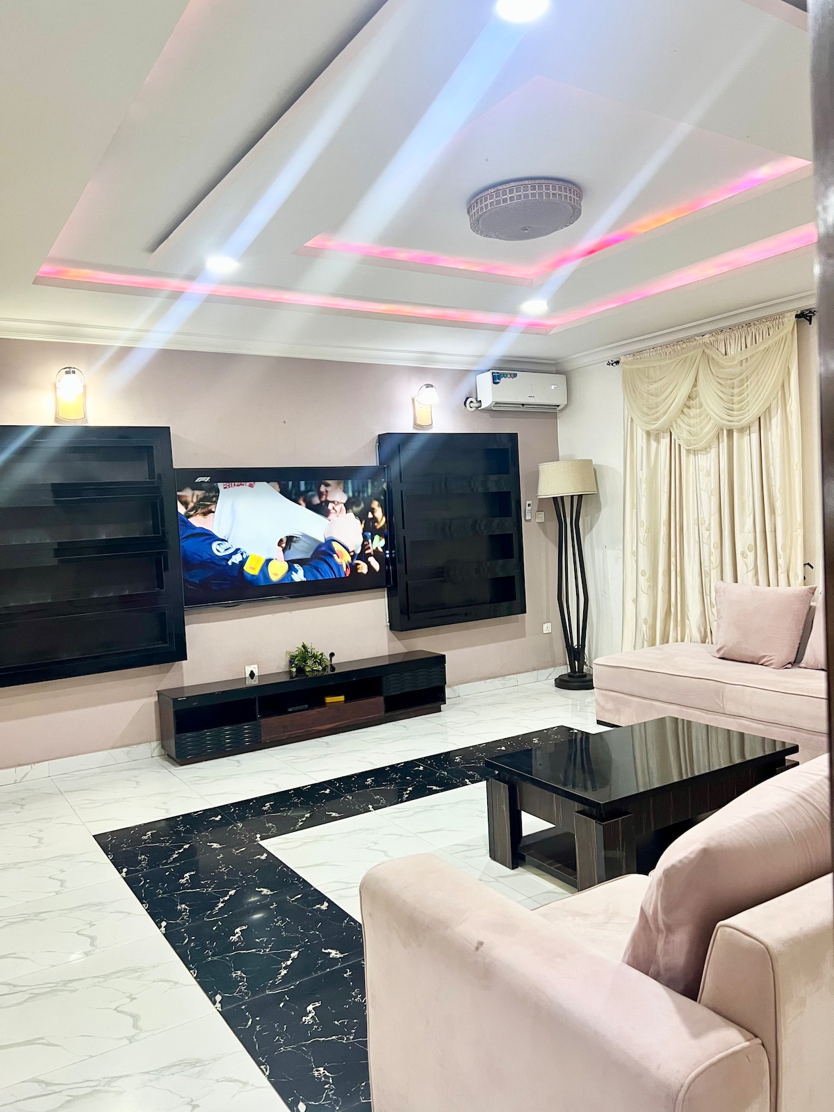 Enjoy a modern, fully furnished 2-bedroom apartment in Independence Layout’s Republic Estate. Relax in the spacious living room with a huge sofa, stylish décor and statement lighting, or unwind on the balcony with swing chair and plants. Clean bathrooms with water heaters, secure parking and a central location make this perfect for families, friends and business stays.