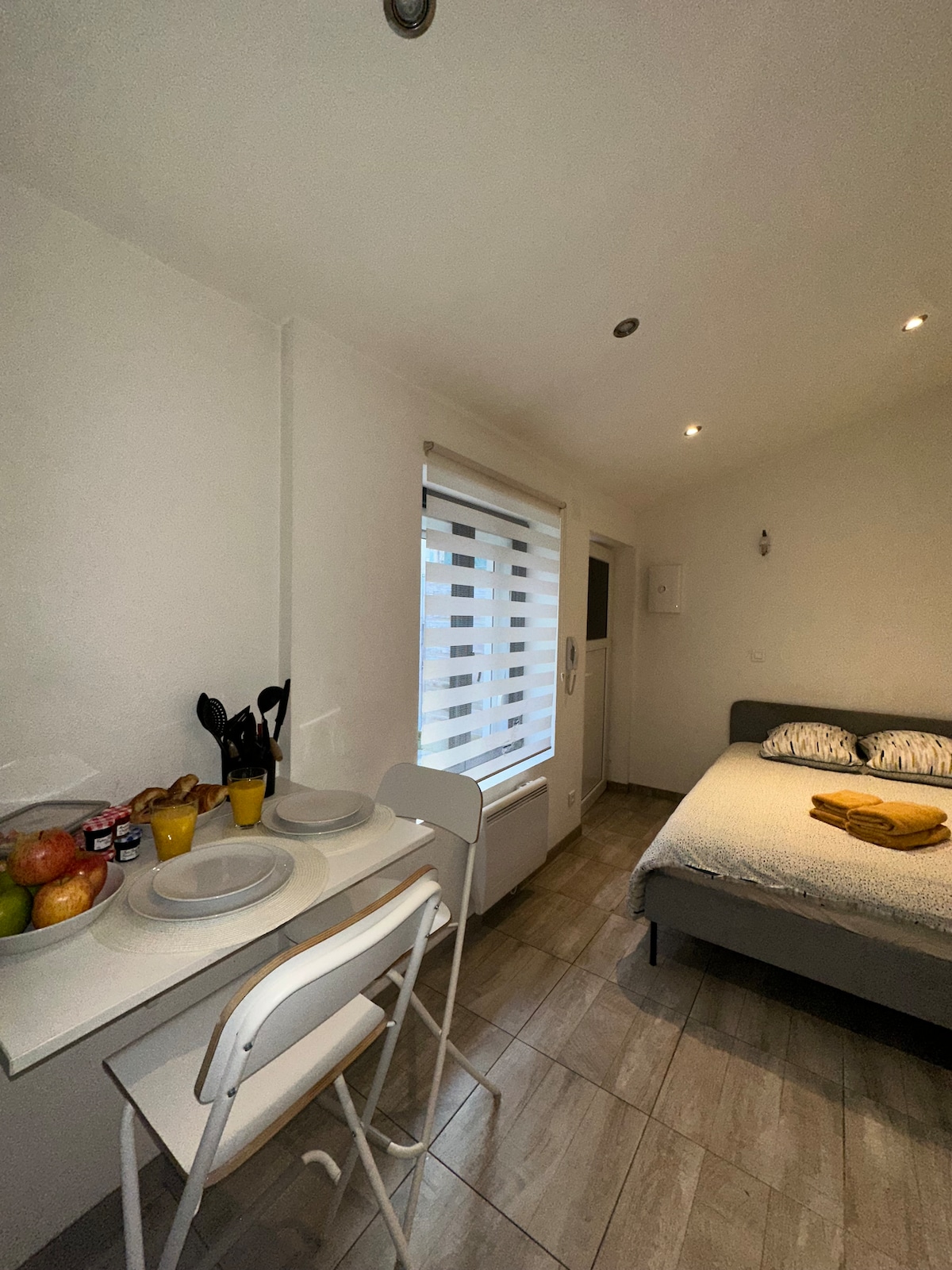 Maža maždaug 18 m2 studija, esanti priešais „Parc Jacquet“. Jame yra lofto lova (1 vieta) su sofa-lova tiesiai po (2 vietos), vonios kambarys su tualetu ir maža virtuvė ( indai, kaitlentė, mikrobangų krosnelė, šaldytuvas...). Jame yra nedidelis ūkinis pastatas su skalbimo mašina. Yra televizorius. Ši vieta nėra prabangi, bet labai funkcionali. Wi-Fi prieiga ribojama iki 40GO per savaitę. Puikiai tinka ilgoms viešnagėms: nuo kelių savaičių iki kelių mėnesių.