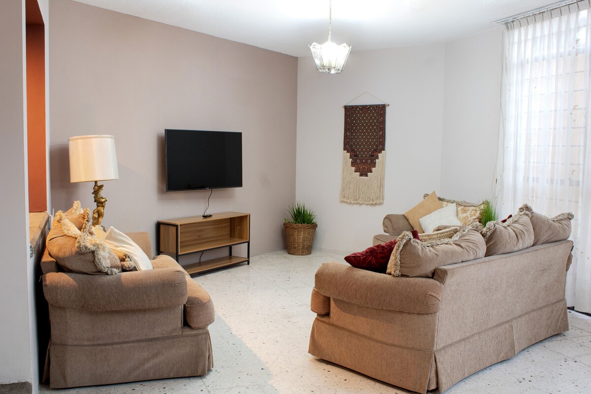 Iki mugės galima nueiti per 10 minučių! 🎡 Naujai suremontuotas namas paruoštas ir paruoštas jūsų viešnagei. Apgyvendinimas centriniame ir ramiame rajone, apsuptas paslaugų, ligoninių (IMSS HGZ1, MAC, cmq, Cardiológica), prekybos zonų, barų, restoranų, kavinių ir miesto centro. 3 minutės nuo autobusų stoties ir 10 minučių pėsčiomis iki centro. Puikiai tinka puikiai viešnagei. Automobilį galite pastatyti priešais namą arba galite pasinaudoti svečiams skirta stovėjimo vieta priešais namą.