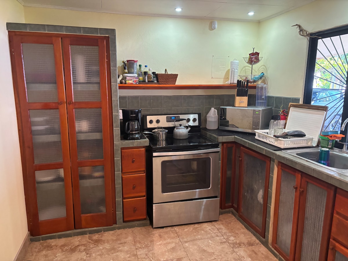 CASA PARADISE is perfect for a relaxing vacation in a small beach town. This private two-story home features one spacious bedroom, 1.5 bathrooms, and an ocean view, set in a quiet neighborhood in Esterillos Oeste. The home includes a private Balinese-style saltwater pool and is fully equipped for a comfortable stay. The entire property—including the house and pool—is yours to enjoy in complete privacy. It’s less than a 3-minute walk to the beach and a short walk to the town center.