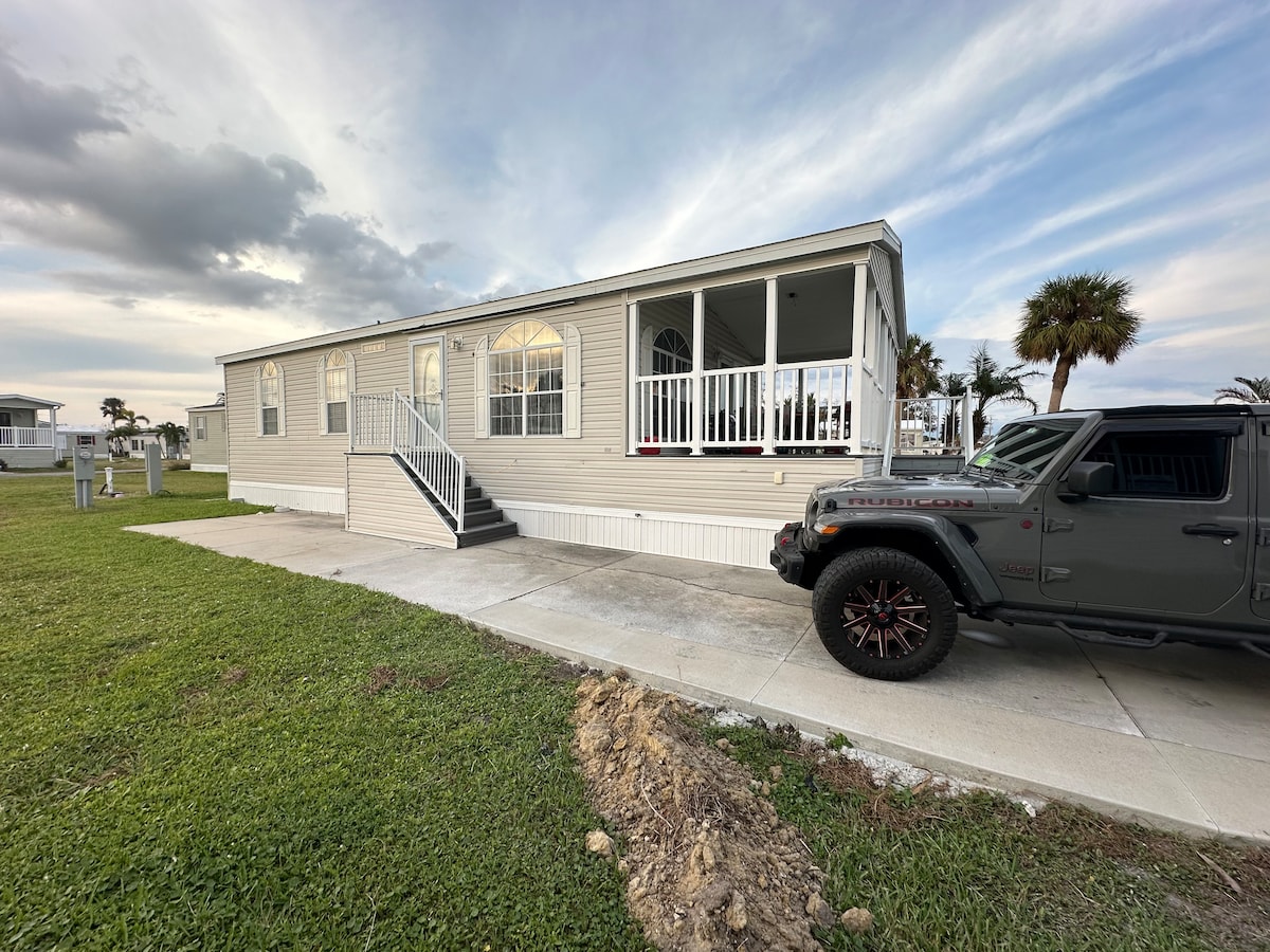 This picturesque Airbnb is a hidden gem nestled along a canal, one minute boat ride to the Caloosahatchee River. The living room, bathed in natural light is perfect for taking in the scenic views. The spacious bedroom has a king-size bed, ensuring a night of blissful rest. The full kitchen is equipped with all modern appliances. Close to Sanibel & Fort Myers Beach. Bring your boat & dock it on the seawall, ready to set sail whenever your heart desires. Book now - your coastal paradise awaits!