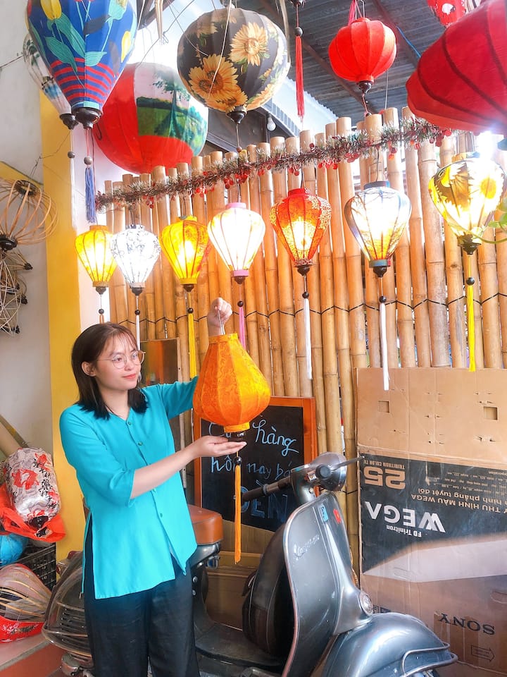 Nuostabus potyris nuo pradžios iki pabaigos! Šeimininkas mus šiltai pasitiko ir pasiūlė žolelių arbatos. Galite rinktis iš jau paruošto žibinto pagrindo – 4 formų – arba pradėti nuo pat pradžių ir išmokti formuoti žibinto pagrindą. Mes pasirinkome pastarąjį ir nusprendėme padaryti „pyrago“ formą ir „saulėtekio česnako“ formą. Darbuotojai kantriai parodys, kaip surinkti bambuką, vielą ir rėmą, taip pat kaip sulenkti bambuką į pasirinktą formą. Tada galėsite pasirinkti audinį savo žibintui ir kaip jį kruopščiai užtepti klijais. Visi darbuotojai mielai atsakys į visus klausimus ar padės išspręsti problemas, su kuriomis susidursite gamindami žibintą. Mano žibintas pradėjo krypti, kai klijavau audinį, ir jie lengvai jį sutvarkė. Vieta buvo pilna kitų žmonių, gaminančių žibintus, o darbuotojai lengvai su mumis susitvarkė su geru humoru ir žiniomis. Tikrai rekomenduotume šį potyrį visiems!