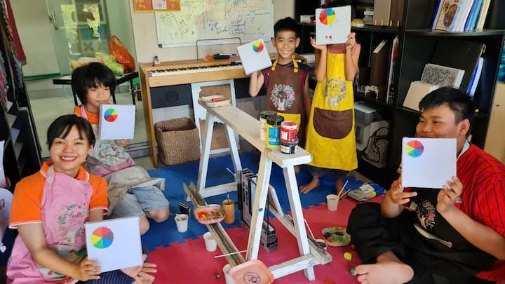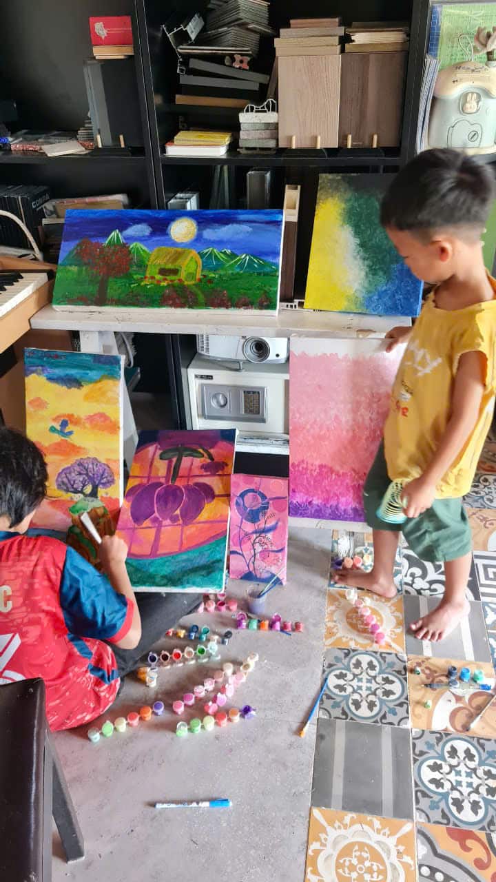 Nuvesime jus prie lotosų tvenkinio, esančio netoli mūsų dirbtuvių, kad galėtumėte patys pasigrožėti vaizdu. Tada iliustruosime, kad galėtumėte patys jį nupiešti ir nudažyti. Meno kūrinio sukūrimui prireiks 7 valandų