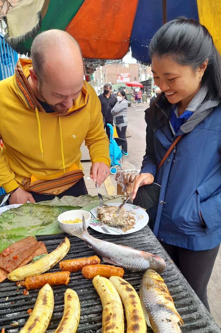 12 perujietiškų užkandžių centrinėje turgavietėje su vietiniu