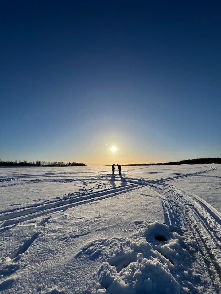 Prisijunkite prie vietinio gido ir žvejokite ant ledo Laplandijos užšalusiuose vandenyse. Eisime ant ledo, gręšime skyles ir bandysime laimę. Mėgaukitės gamtos ramybe, o tada sušilkite prie laužo su užkandžiais ir karštais gėrimais.