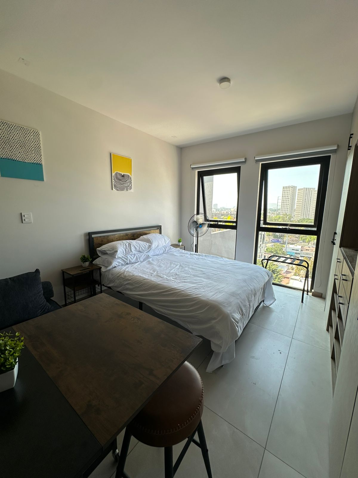 „Expo Guadalajara“ už 2 minučių. Visiškai nauja 12 aukšto loftas su centriniu oro kondicionieriumi, 100 Mbps Wi-Fi, karališko dydžio lova ir sofa-lova, įrengta virtuvėle, dideliu televizoriumi, valgomojo stalu ir specialia automobilių stovėjimo aikštele. Įėjimas į registratūrą; išmanioji spyna ant durų. Pastato privalumai: bendradarbystė ir poilsio erdvė su vaizdu į panoramą, sporto salė, jogos terasa, kepsninės, laužavietės ir bendros erdvės, biliardo ir fuzbolo stalas. Netoli Chapalita ir Mercado de Abastos. Peržiūrėkite virtualią ekskursiją, tada užsisakykite datas arba parašykite man, jei turite klausimų.