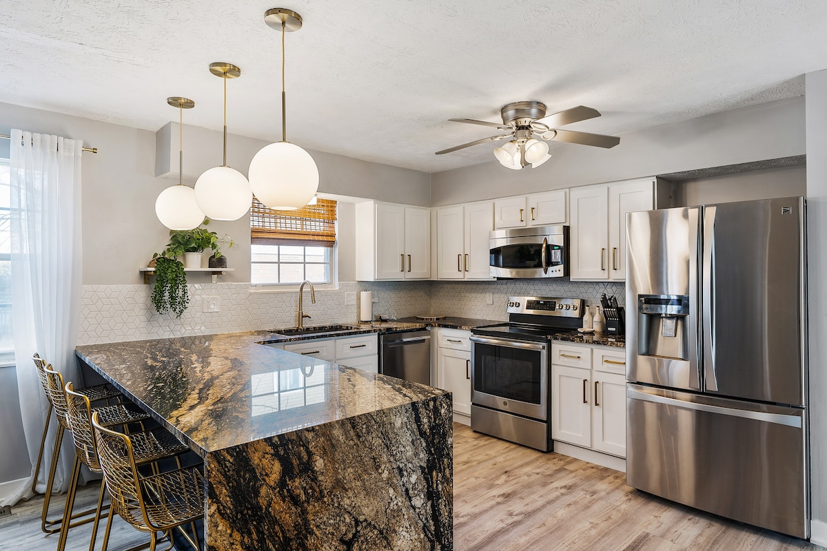 15 minučių ar mažiau nuo Majamio universiteto, Spooky Nook, Hanover vyno daryklos, Hanoverio rezervato, Lake Lyndsay ir Hueston Woods. Sveiki atvykę į kviečiantį poilsį tarp gyvybingų Oksfordo ir Hamiltono miestų, Ohajuje! Mūsų puikiuose namuose yra 4 patogūs miegamieji, 2 pilni vonios kambariai, 2 pusiau vonios kambariai ir arkadinis kambarys. Nesvarbu, ar esate čia tam, kad atsipalaiduotumėte, tyrinėtumėte ar mėgautumėtės vietiniais renginiais ir pramogomis, džiaugiamės galėdami jus priimti ir užtikrinti, kad jūsų apsilankymas atitiktų visus jūsų lūkesčius.