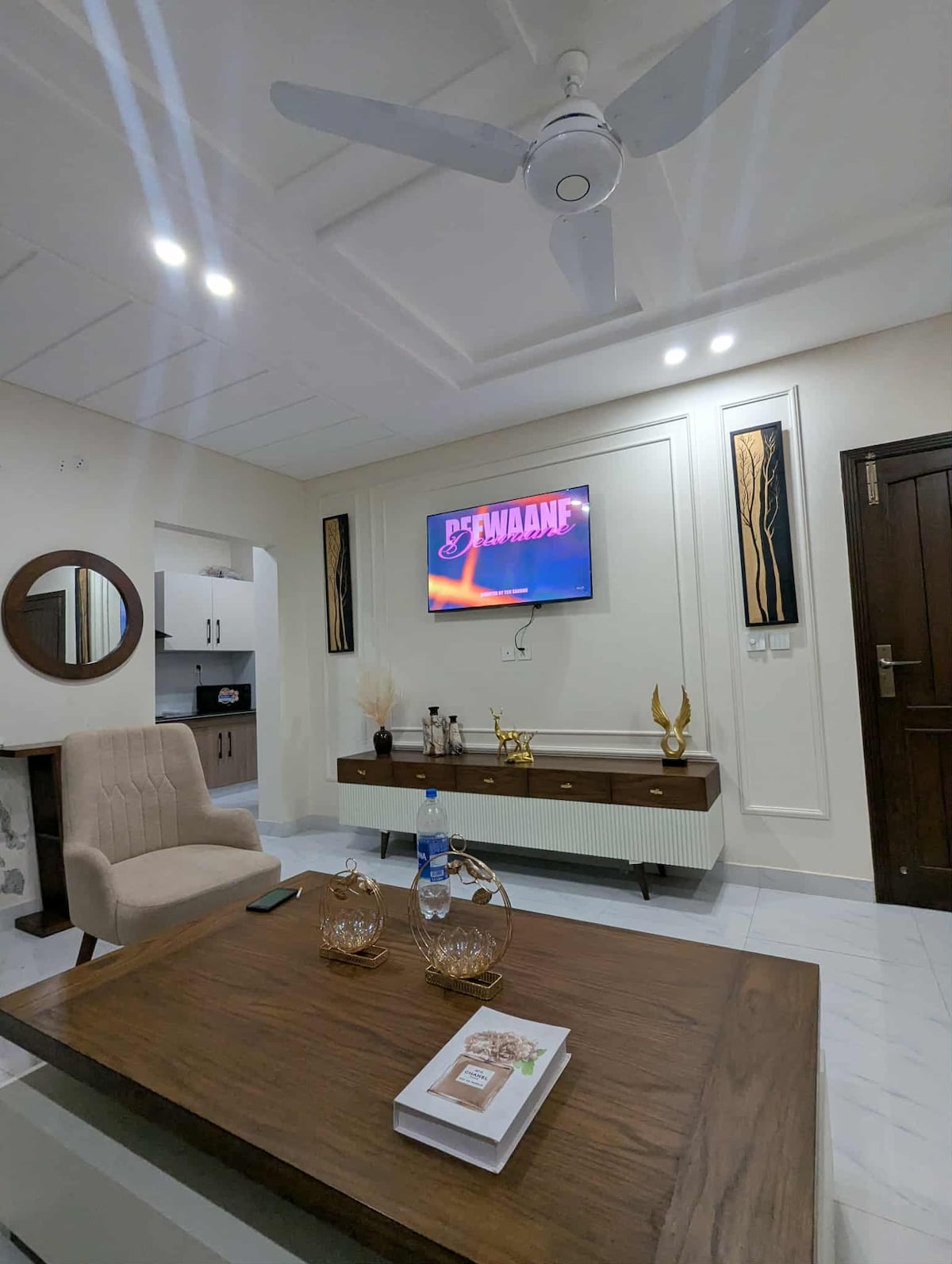 Patirkite šiuolaikinį komfortą pačioje Faisalabado širdyje. Šis stilingas 1 miegamojo butas yra ramioje gyvenamojoje zonoje, puikiai tinkantis poroms, šeimoms ar verslo keliautojams. Mėgaukitės sparčiu belaidžiu internetu, jaukiu miegamuoju su prabangia karališko dydžio lova ir 50 colių išmaniuoju televizoriumi su „Netflix“, kad galėtumėte neribotai pramogauti. Pilnai įrengta virtuvė leidžia lengvai gaminti maistą namuose, o netoliese esantis Kohinoor ir pagrindiniai miesto patogumai suteikia greitą prieigą prie maitinimo, apsipirkimo ir pramogų centrų.