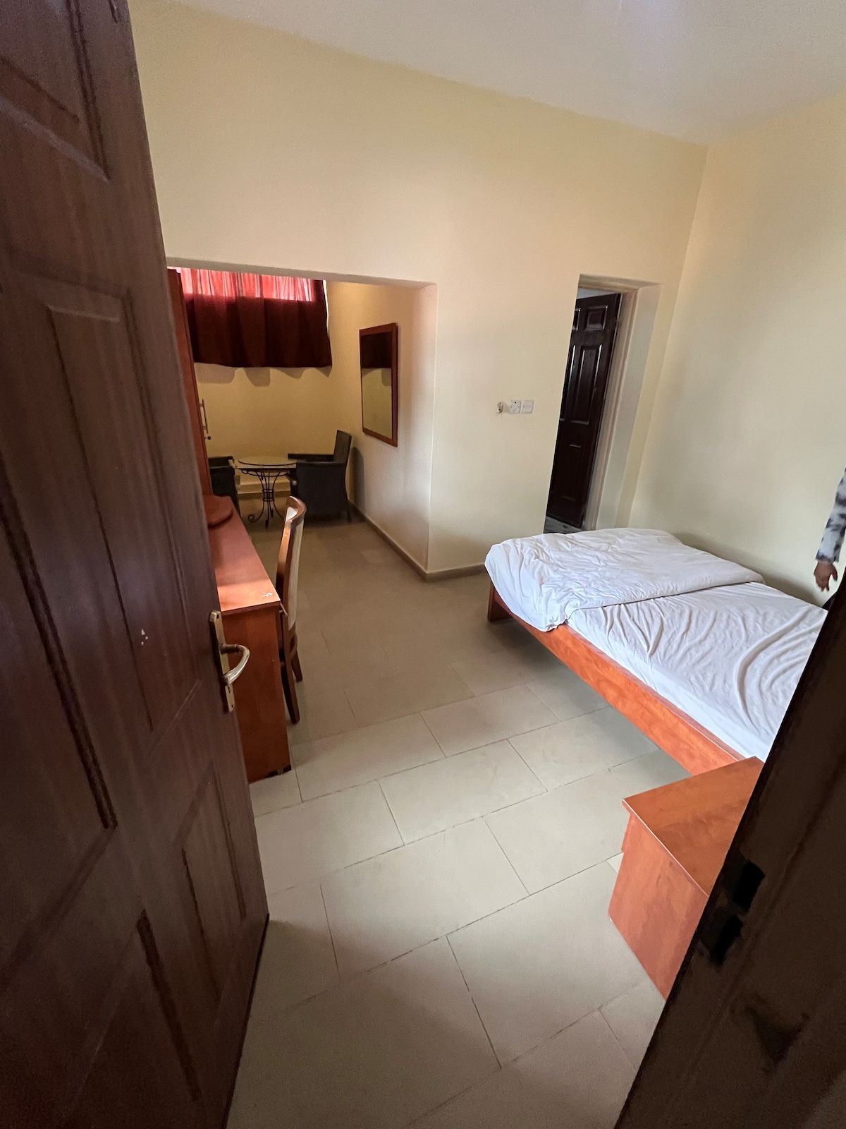 Puikus 1 lovos butas su gyvenamąja zona Abudžoje.