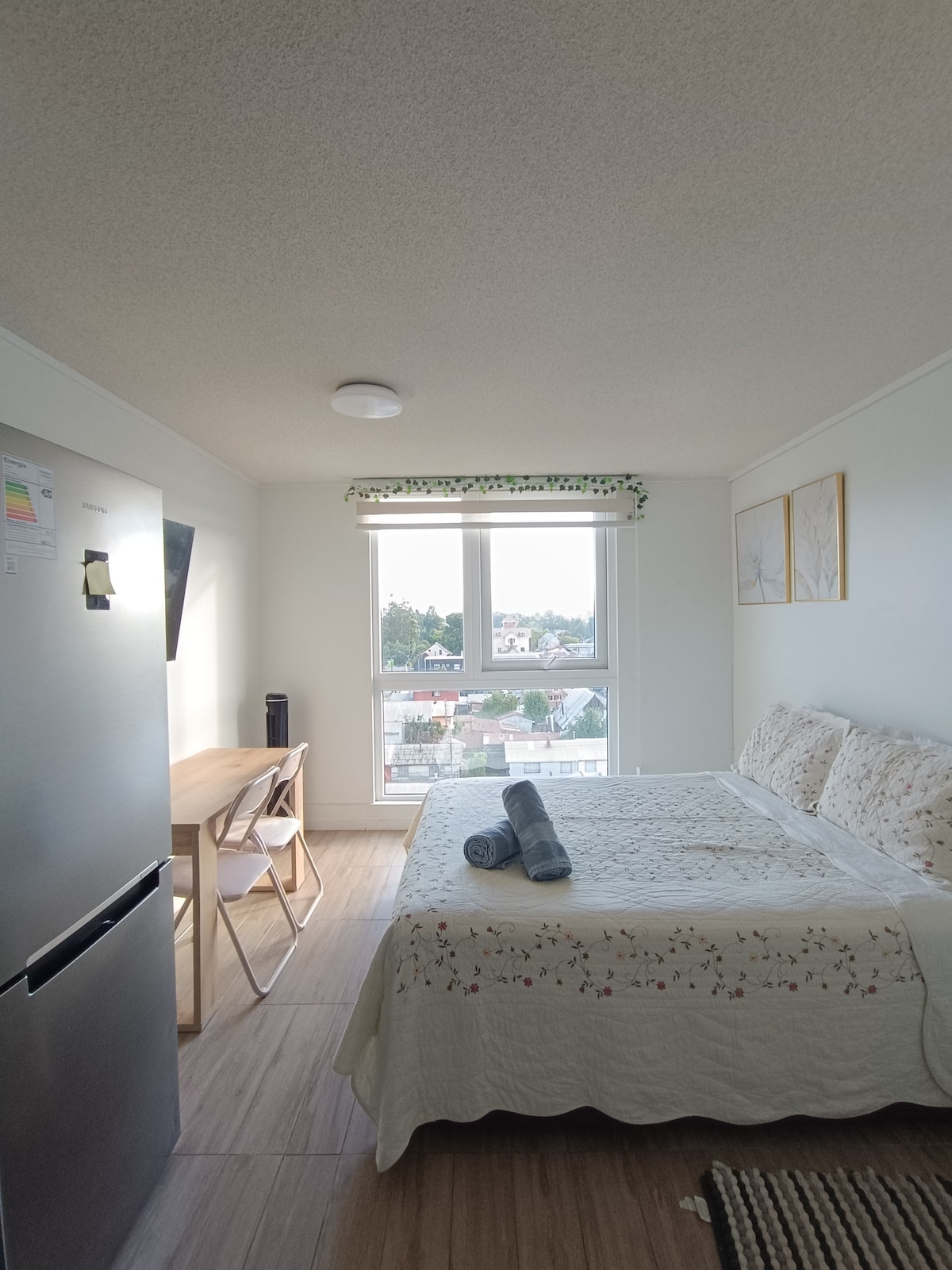 ¡Tu base ideal en Valdivia! Disfruta de este moderno departamento en el piso 6, ubicado a minutos caminando del centro, parques y la mejor gastronomía. El espacio es fresco e iluminado, equipado con Wifi de alta velocidad, Smart TV y seguridad 24/7. Contamos con estacionamiento privado (sujeto a reserva y pago adicional) y opciones gratuitas en la calle según disponibilidad. Además, el edificio ofrece servicio de lavandería de pago. ¡Vive Valdivia con todo cerca y reserva hoy!