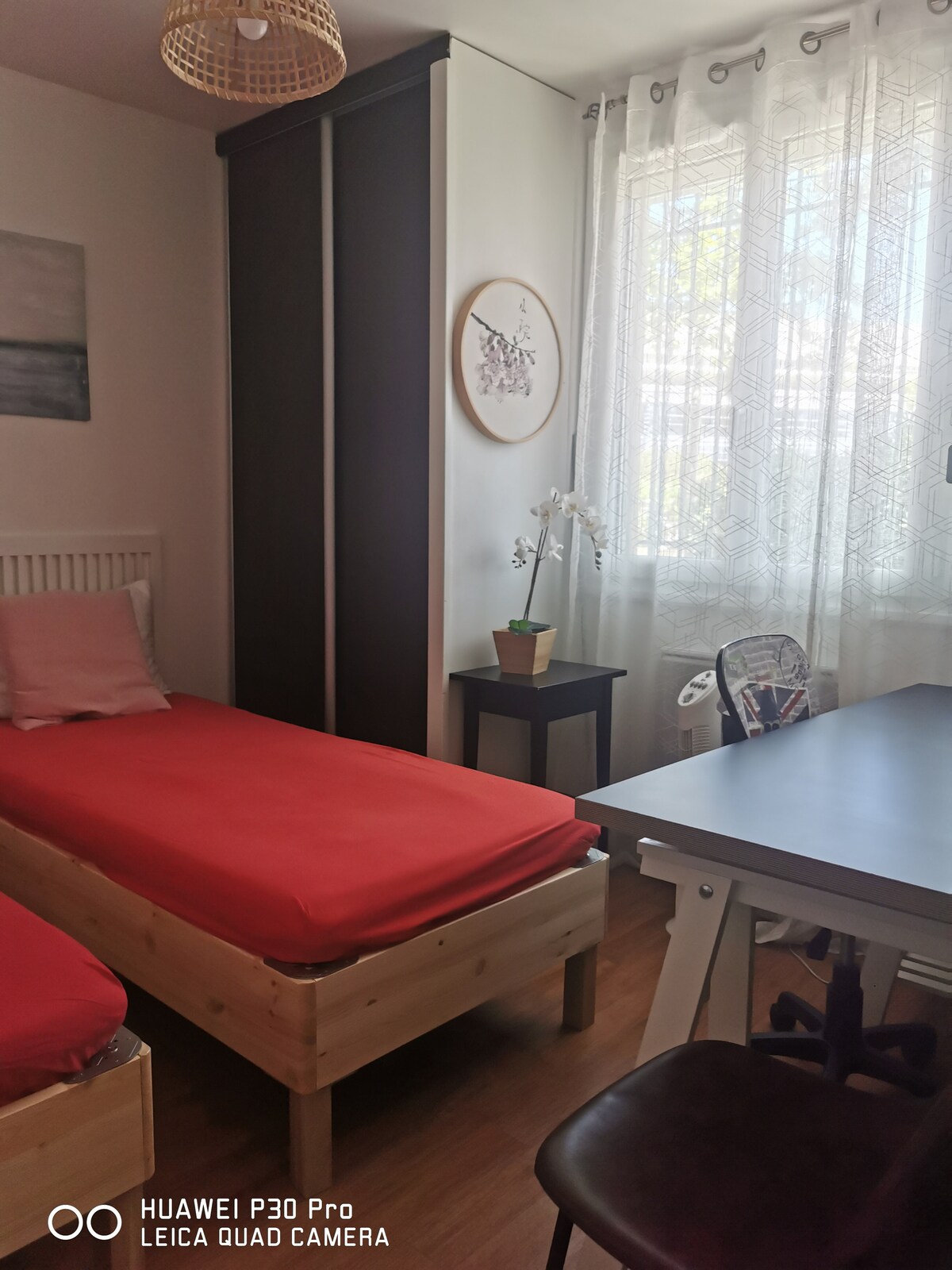 Sveiki, siūlome atskirą baldais apstatytą F2 su terasa ir automobilių stovėjimo aikštele, mūsų namuose su baseinu. Privatus įėjimas, atskira virtuvė ir vonios kambarys, visa įranga ir kokybiška patalynė. Tramvajus 3 minučių pėsčiomis, 15 minučių pėsčiomis nuo St Roch traukinių stoties ir Place de la Comédie, jo akcentas yra labai privilegijuota vieta, su tiesiogine prieiga prie parduotuvių, turgaus ir miesto centro, mėgaujantis šimtmečio senumo medžiais, išsaugota laukine gamta ir raminančiu 3300 m2 parku.
