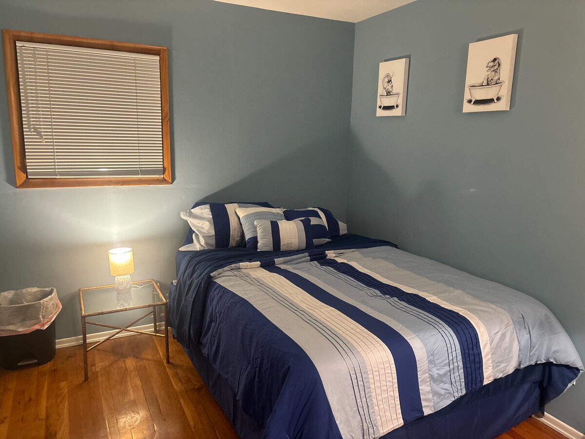 Mūsų namai yra Shirley, Long Island. Jis yra už dviejų mylių nuo Smith Point paplūdimio vandenyno pakrantėje. Šis skelbimas skirtas užsakyti visus namus, kai esame išvykę iš miesto. Peržiūrėkite mūsų atsiliepimus apie kitą to paties kambario ir namų skelbimą. Svečių miegamasis yra pagrindiniame mūsų namų aukšte, o šalia kambario yra vonios kambarys. Kambaryje yra patogi karališko dydžio lova, stalas su dviem kėdėmis, spinta, du naktiniai staliukai, fotelis ir Apple TV su įvairiomis transliacijos programėlėmis