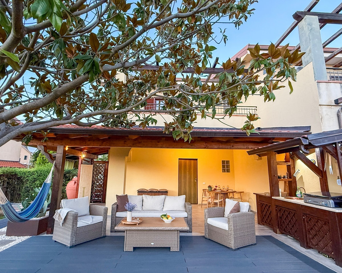 Atraskite mūsų neseniai atnaujintą „Casa del Mare“, įkvėptą Viduržemio jūros spalvų. Vos už 150 metrų nuo jūros, už 15 minučių nuo Lamezia Terme oro uosto, už 2 km nuo greitkelio. Apsuptas turistinio kaimo pušyno, name yra visi patogumai: vidaus/lauko virtuvė, vidaus/lauko dušai, belaidis internetas, oro kondicionierius, televizorius, skalbimo mašina, indaplovė, orkaitė, plaukų džiovintuvas ir 2 dviračiai, skirti tyrinėti aplinką. Didelė lauko erdvė su stalu, kėdėmis ir skėčiu.
