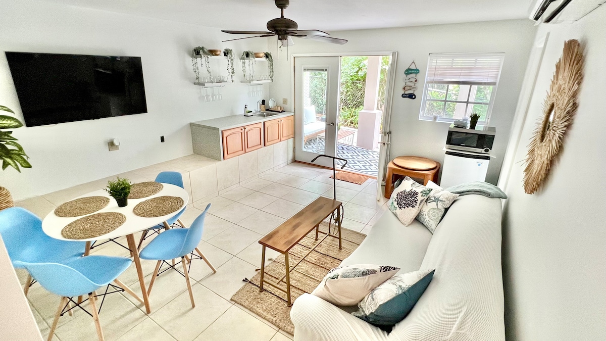 „Captain's Quarters“ yra naujai renovuoti svečių apartamentai, esantys prie mūsų namų, iš kurių atsiveria vaizdas į Thompson Cove kanalą ir vos už 3 minučių kelio pėsčiomis iki paplūdimio. Mėgausitės atskiru įėjimu, privačia terasa ir privačia terasa su vaizdu į kanalą. Kviečiame naudotis mūsų SUP ir baidarėmis, esančiomis mūsų svečių prieplaukoje. Užsisakykite jau šiandien ir mėgaukitės idealiu tropiniu pabėgimu į ramią vietą Provo, TCI!