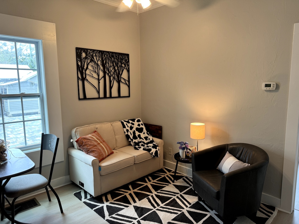 Aukštos lubos jus pasitiks šioje antro aukšto studijoje, esančioje istoriniame Šv. Augustino centre. Šis butas, pastatytas 1910 m., o visiškai atnaujintas 2023 m., yra vos už dviejų kvartalų nuo St. George St., pėsčiomis iki Flaglerio ir viso Šv. Augustino miesto centro. Šioje studijoje yra visa virtuvė, karališko dydžio lova ir privati terasa. Nemokama automobilių stovėjimo aikštelė ne gatvėje, kad galėtumėte pasistatyti automobilį, vaikščioti ir mėgautis viskuo, ką gali pasiūlyti miesto centras.