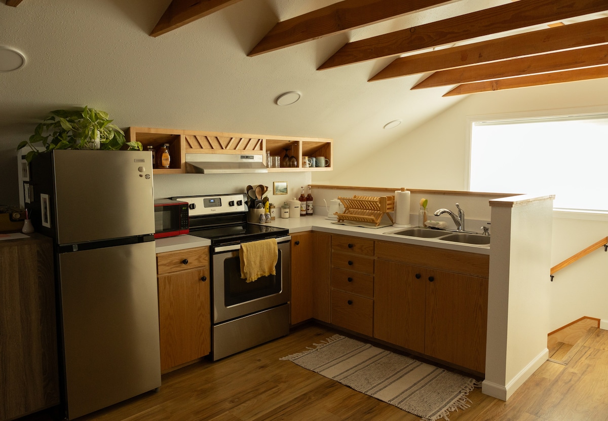 Vykstate į pakrantę dirbti ar žaisti? Užsisakykite viešnagę pirmame aukšte: saulėgrąžų jūros! Dvigulė lova, vonia su letena/dušas, virtuvėlė, nuleidžiamas rašomasis stalas/valgomasis, Wi-Fi. Automobilių stovėjimo aikštelėje. Yra baidarių. Lengvas 4 kvartalų pėsčiomis iki Heceta paplūdimio. Vos už dviejų mylių nuo Hwy 101, 5 mylios iki senamiesčio/įlankos gatvės palei gražią Siuslaw upę. Ežerai, žygiai pėsčiomis, šviesūs namai, uždengti tiltai, kriokliai lengvai pasiekiamoje vietoje.