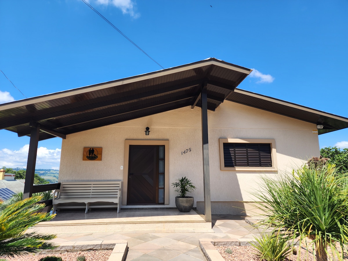 Poilsio namelis Flores da Cunha vynuogynų viduryje, skirtas atsipalaiduoti su visa šeima šiame itin ramiame, patogiame ir gamtai tinkamame būste. Visa ir labai gerai įrengta erdvė su indais, kad galėtumėte pasigaminti kepsnių, kavos, pietus ar vakarienę, su Wi-Fi ir privačia prieiga. Poilsio namelis yra netoli vyno daryklų, siūlančių degustacinius potyrius, ir vos už 2 minučių kelio nuo vienos gražiausių Flores da Cunha lankytinų vietų, Mirante Gelain.