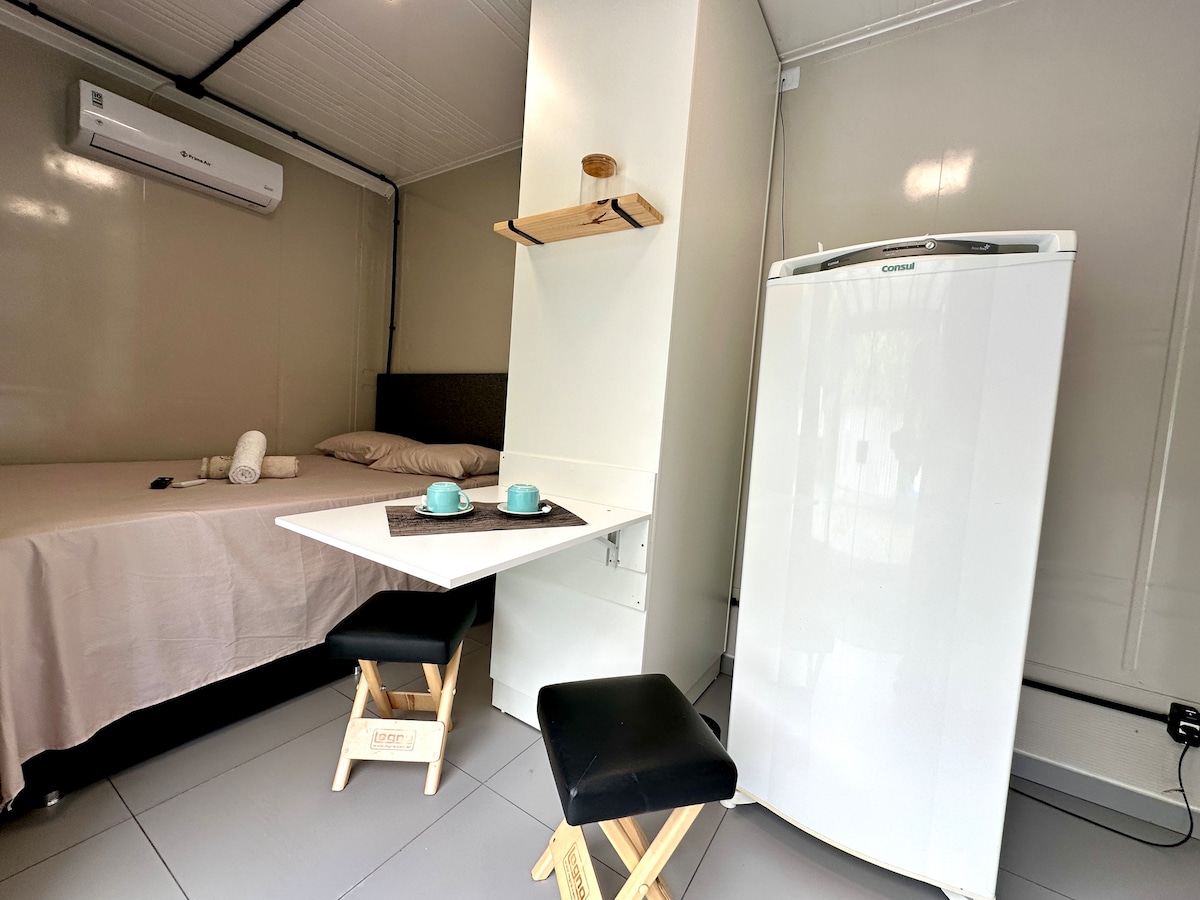 Nauja studija! Architektūrinis dizainas su patogiu ir funkcionaliu dizainu. Stabilus ir galingas internetas, puikiai tinkantis darbui ir linksmybėms toje pačioje vietoje, už 400 m nuo jūros. Nestandartiniai baldai, nauji prietaisai, skirti jūsų ekonomikai ir praktiškumui, oro kondicionierius, karštas vanduo visuose čiaupuose, skalbyklė-džiovyklė, 43 colių televizorius, Dolce Gusto kavos virimo aparatas, ClaroTV, Disney ir Netflix. Šeimos pastatas, ramus, su baseinu ir garažu. Laisvalaikis arba darbas - tobula viešnagė Florianopolyje.