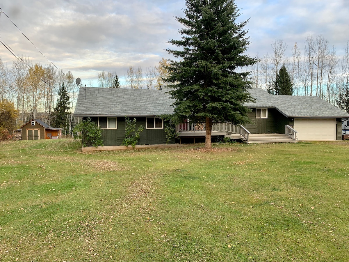 MIEGAMASIS NR. 2, GANA PLOTO ERDVĖJE. Patirkite ramybę tvarkingame, jaukiame rūsio apartamentuose puikioje vietoje. Mūsų namai puikiai tinka šeimoms ir draugų grupei, keliaujantiems per juos arba keliautojams, tyrinėjantiems Šiaurės uolas . Iš jo ramios, saugios ir iš jos atsiveria panoraminis vaizdas į Muskwa upės slėnį. Stebėkite gražų saulėtekį ir saulėlydį arba šiaurines šviesas iš mūsų kiemo šalia laužavietės. Atvykite ir susipažinkite arba pamaitinkite mūsų ūkio gyvūnus, kad jūsų apsilankymas Nelsone būtų nepamirštamas.