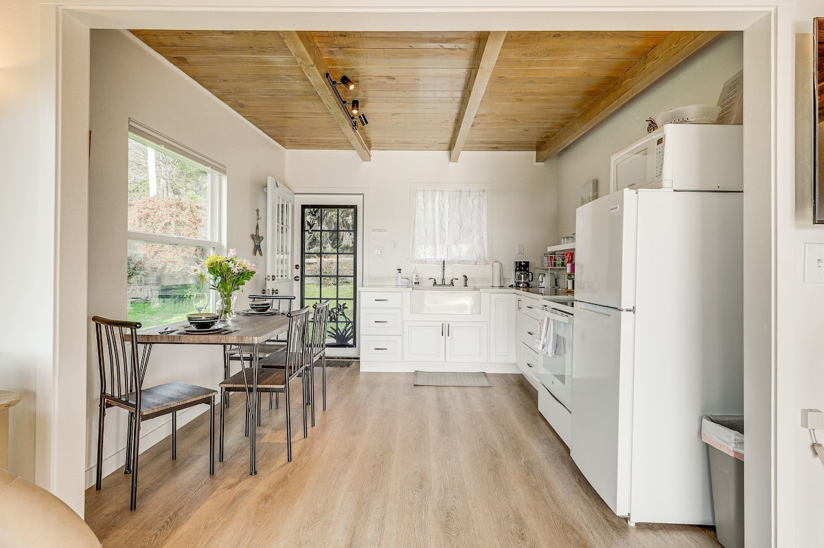 Sveiki atvykę į mūsų žavingą kotedžą - neseniai atnaujintą ir gražiai suprojektuotą poilsiavietę, įsikūrusią tarp Duncans Mills medžių ir iš kurio atsiveria kvapą gniaužiantys upės vaizdai. Mėgaukitės ramybe gurkšnodami rytinę kavą arba apvyniodami stikline vyno ant privačios terasos. Lauko entuziastams vos už kelių žingsnių nuo pėsčiųjų takų, todėl galite tyrinėti natūralų vietovės grožį. Pasivaikščiokite iki netoliese esančios vietinės kepyklos arba leiskitės į trumpą kelionę iki pakrantės.