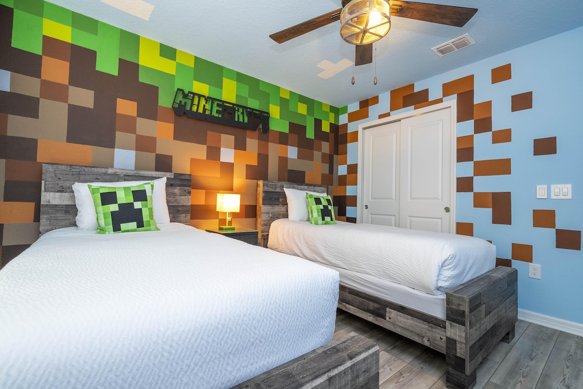 Sveiki atvykę į Sprocket Palms - stilingą 3000 kv. pėdų poilsį vos už 20 minučių kelio nuo Disnėjaus. Šiame neseniai renovuotame name yra šildomas baseinas ir SPA, retro 90-ųjų arkada, pliušiniai dizainerių miegamieji ir lauko poilsio erdvė su televizoriumi. Apgalvotai suprojektuotas tiek komfortui, tiek linksmybėms, tai puikus pabėgimas šeimoms, draugams ir įvairaus amžiaus grupėms, norinčioms atsipalaiduoti, atgauti jėgas ir kurti nepamirštamus prisiminimus.
