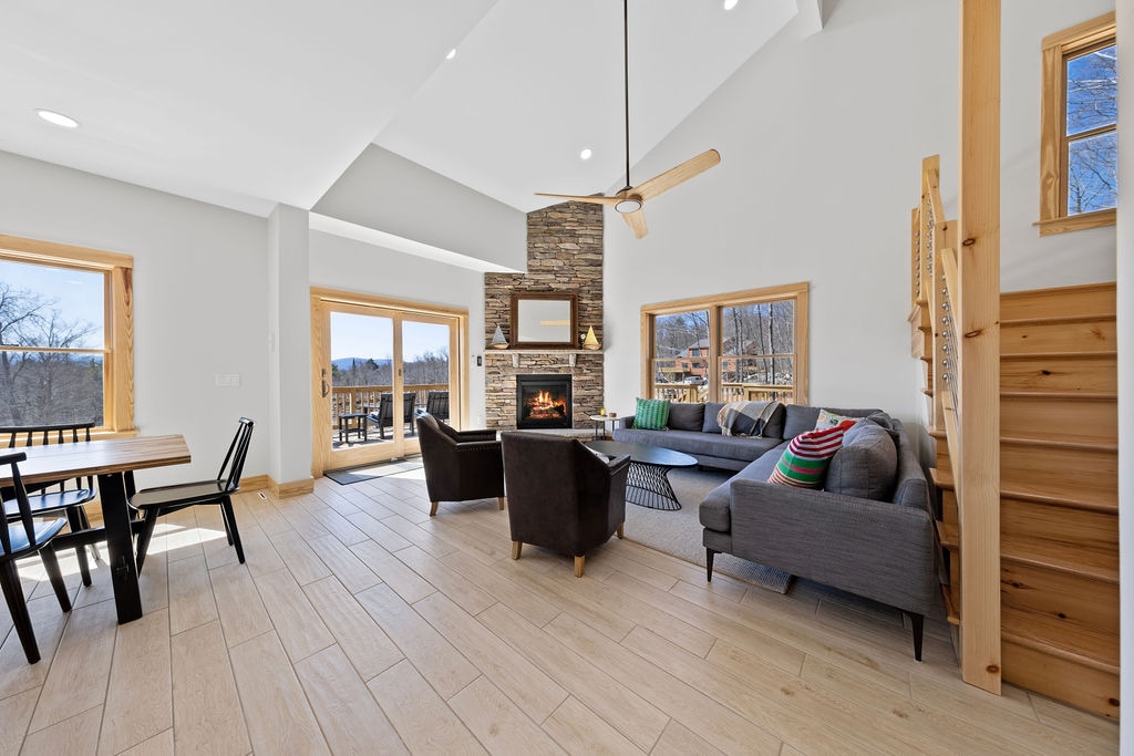 Šis šeimai tinkamas miesto namas su trimis miegamaisiais yra patogioje vietoje, vos už kelių minučių kelio pėsčiomis iki restoranų, parduotuvių, olimpinio kaimelio ir vos už 9 mylių nuo Whiteface kalno. Atvirame virtuvės, valgomojo ir gyvenamųjų erdvių išplanavime yra daug erdvės. Bute yra du pilni vonios kambariai ir trys miegamieji su miegojimo vietų išdėstymu iki septynių asmenų. Lauke yra dujinė kepsninė ir laužavietė. TRUMPALAIKĖS NUOMOS LEIDIMAS: 2025-STR-0043