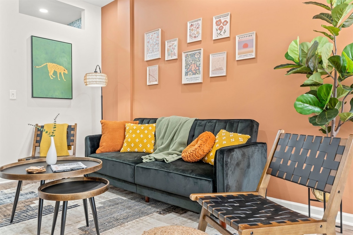 Šiame moderniame lofte yra 1 karališko dydžio lova, 1 miegamasis, 1,5 vonios kambario, 55colių televizorius svetainėje ir 50colių televizorius miegamajame su skalbykle ir džiovykle. Vos už 3 minučių kelio automobiliu iki konferencijų centro, kinų kvartalo, skaitymo terminalo turgaus, prekybos centrų, barų, restoranų ir poilsio kambarių, šis stilingas butas yra puiki poilsio vieta po populiariausių Filadelfijos lankytinų vietų tyrinėjimo dienos.
