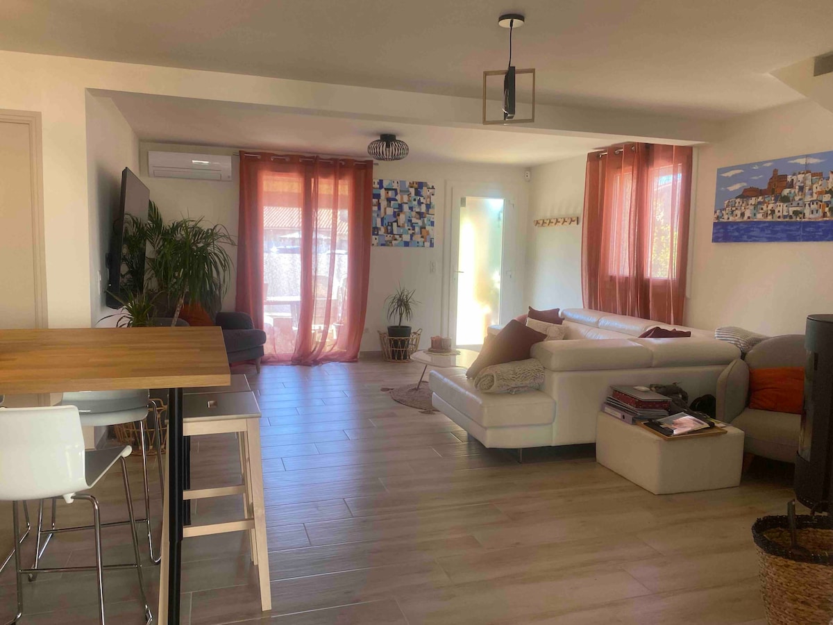 Netoli jūros 4 km, miesto centras, parduotuvės. 3-Key Clévacances ir Green Key Label. Paviršiaus plotas 99m2 2 aukštuose ( + 2 verandos). Reversinis oro kondicionierius. Puikiai tinka poroms, verslo keliautojams ir šeimoms (su vaikais). Daugiau informacijos: P Yellow Mano vila pietinėje Frontignan dalyje. 06*50*87*48*77 „Mėlynųjų pilvų šalis“ yra ideali vieta atrasti Hérault. Baseinas apsaugotas elektrine ritinine sklende (7 m x 3 m)