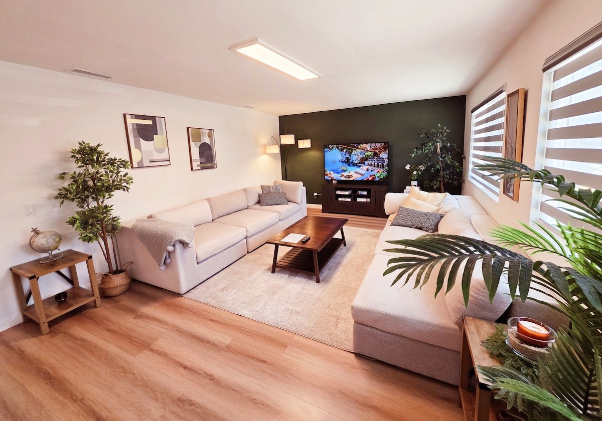 Pasinerkite į svarbiausią Pietų Kalifornijos potyrį su mūsų žavinga Airbnb. Mūsų 3 lovų 2 vonios poilsis yra tikras perlas, siūlantis harmoningą komforto ir stiliaus derinį. Atidarykite duris į savo terasą ir priekinius vartus kieme, suteikdami didingą erdvę maistui, kavai arba tiesiog poilsiui saulėje. Po kasdienių nuotykių grįžkite į mūsų Airbnb patogumus. Kiekvienas miegamasis skirtas maksimaliam atsipalaidavimui, užtikrinančiam gerą nakties poilsį visiems.