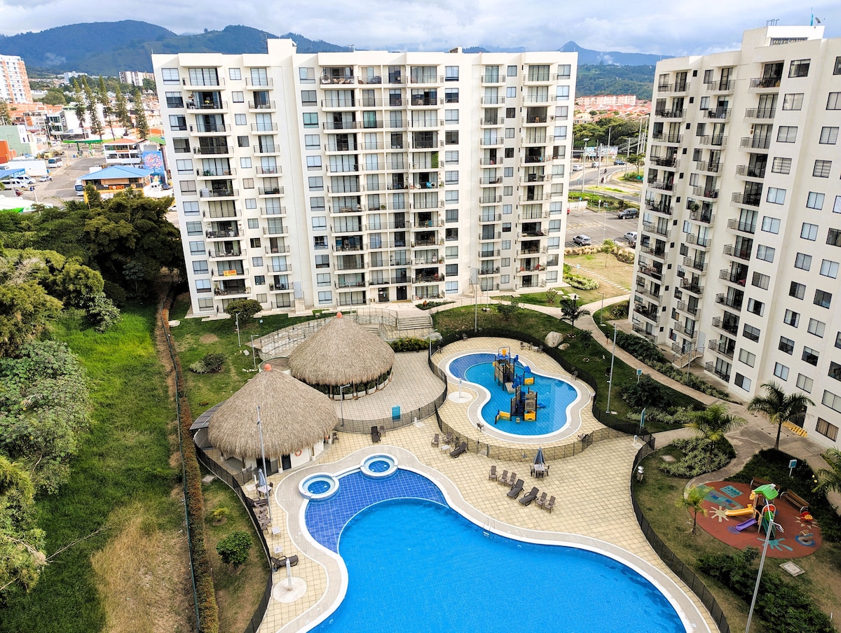 Ieškote erdvios vietos atostogoms Fusagasugoje? Šis modernus butas puikiai tinka šeimoms, norinčioms mėgautis visais šio gražaus miesto patogumais ir pramogomis. Amplitudė ir modernumas: bute yra erdvios erdvės ir modernus dizainas, kuris leis pasijusti kaip namie. Išskirtinės bendro naudojimo erdvės: gyvenamajame komplekse yra prabangios bendro naudojimo erdvės, pvz., baseinas, baseino stalas, stalo tenisas, parkas ir sporto salė, todėl galėsite mėgautis laisvalaikiu