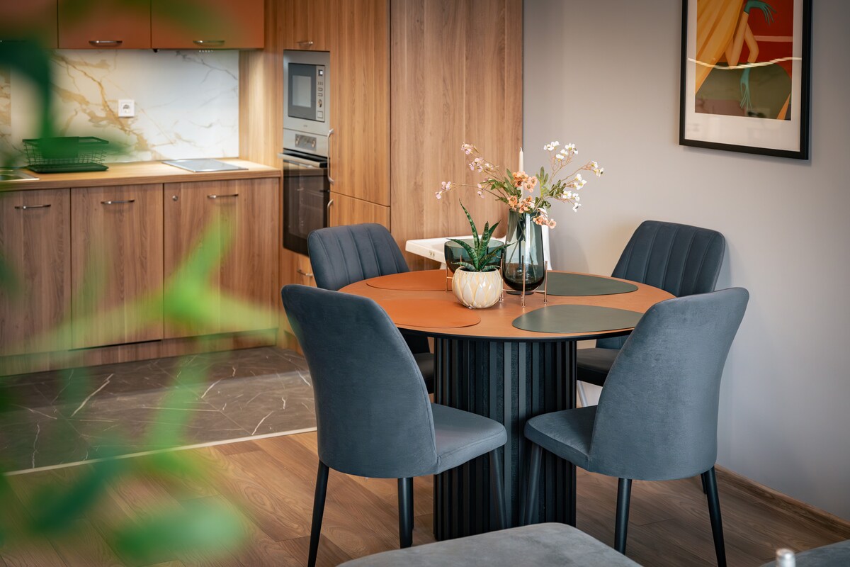 Trinavis Terracotta kviečia jus į ramią, rafinuotą erdvę. Vos už kelių žingsnių nuo didžiausio miesto parko ir už kelių minučių pėsčiomis nuo senamiesčio yra šis būstas, kuriame yra du miegamieji, du vonios kambariai, pilnai įrengta virtuvė su valgomojo zona, šviesi svetainė ir privati terasa su vaizdu į parką ir kalvas. Kiekviename kambaryje rasite spartųjį belaidį internetą, privačią automobilių stovėjimo aikštelę, dujinį šildymą ir oro kondicionierių. Puikiai tinka poroms, šeimoms ar verslo keliautojams, ramybė ir patogumas geriausioje Veliko Tarnovo vietoje.