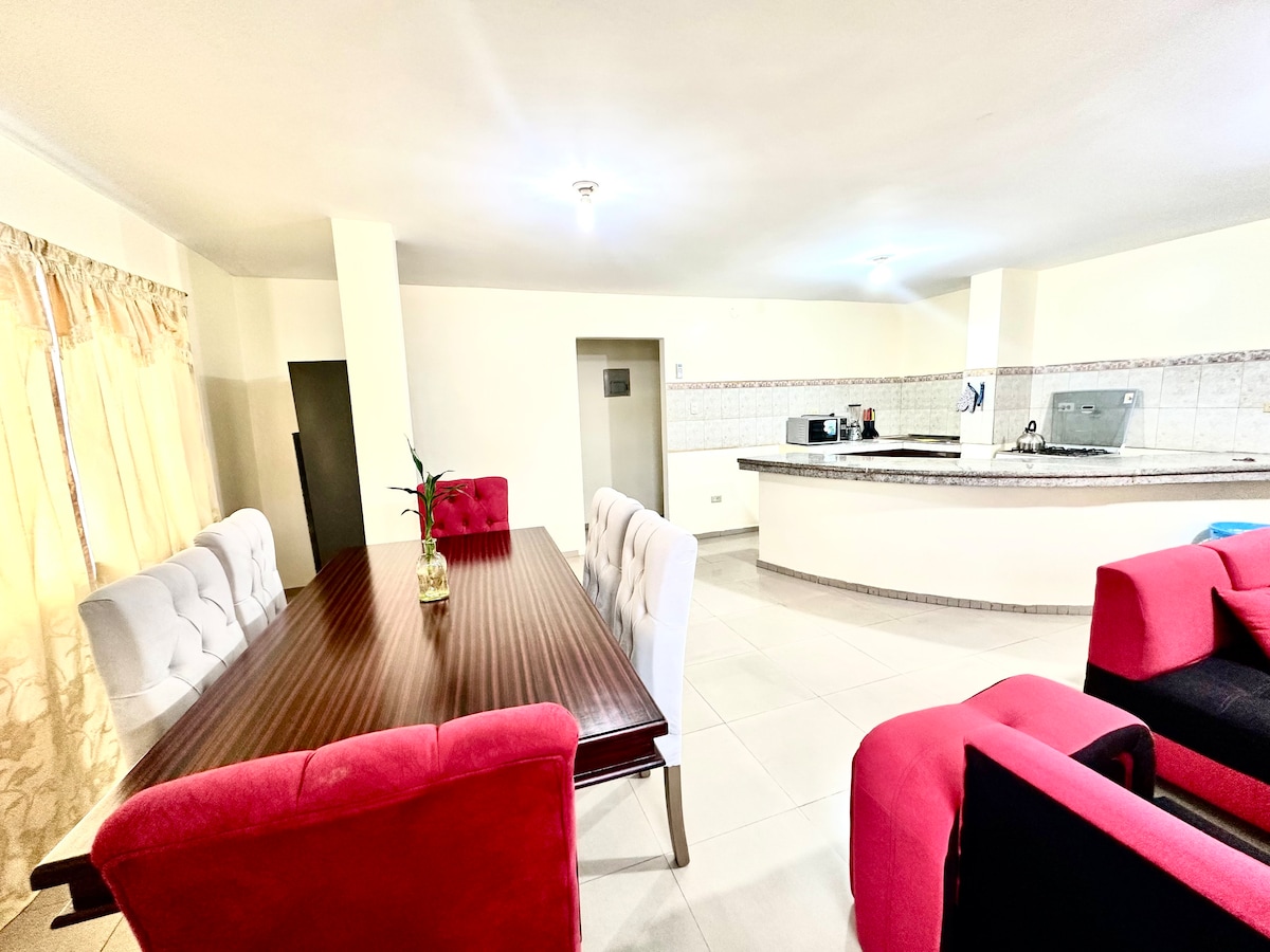Atsipalaiduokite su šeima ir mėgaukitės Galapagų salų žavesiu Tai butas, esantis pirmame šeimos namo aukšte, nepriklausomas ir su viskuo, ko reikia jaukiai viešnagei. Bute yra 2 oro kondicionieriai, plaukų džiovintuvas, lygintuvas, šaldytuvo virtuvė, mikrobangų krosnelė, kavos virimo aparatas, ryžių viryklė, trintuvas, valgomasis, nemokamas Wi-Fi, plokščiaekranis televizorius. Butas yra už 5 minučių kelio nuo Puerto Ayora Malecon.