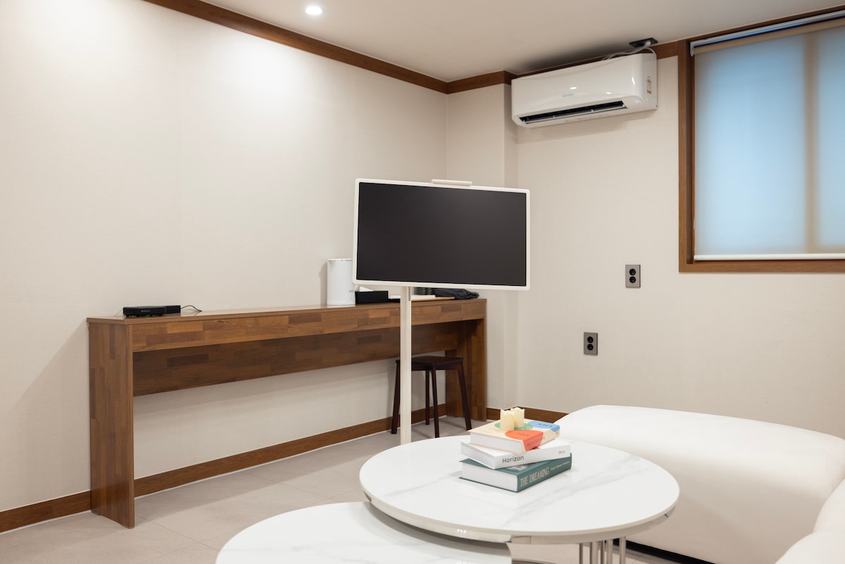 „Sowoljeong“ yra Hanok apgyvendinimo vieta, kurią oficialiai paskyrė Seulo miesto Hanok potyrių verslas ir kuriuo gali naudotis tiek korėjiečiai, tiek užsieniečiai.☺️ Galite pasveikti žiūrėdami į atvirą kiemą iš hinoki (kiparisų vonios). Mėgaukitės pusiau kūno vonia stebėdami saulę dienos metu ir žvaigždes vakaro danguje! Galite apsistoti privačiame Sowoljeong būste, atitrūkti nuo pažįstamos darbo vietos arba nieko nedaryti ir sutelkti dėmesį į savo laiką su savimi ar artimaisiais:) # London Bagel Museum # Yra populiarių vietų, tokių kaip menininkų kepykla, ir jūs galite vaikščioti į turistų lankomas vietas, pvz., Gyeongbokgung rūmus, Ikseon-dong ir Euljiro. ☺️ [Bazinė kaina nurodyta 2 asmenims] * Papildomas asmuo: 70 000 KRW (iki 4 asmenų/rekomenduojama 2 asmenims) * Užsakant 3 ar daugiau žmonių, teikiama papildoma patalynė. [Ankstyvas atvykimas/išvykimo įkainis] * 20 000 KRW per valandą (iki 1 valandos) * Jei apsilankys daugiau žmonių nei užsakytų žmonių skaičius, būsite pašalinti be pinigų grąžinimo🙏