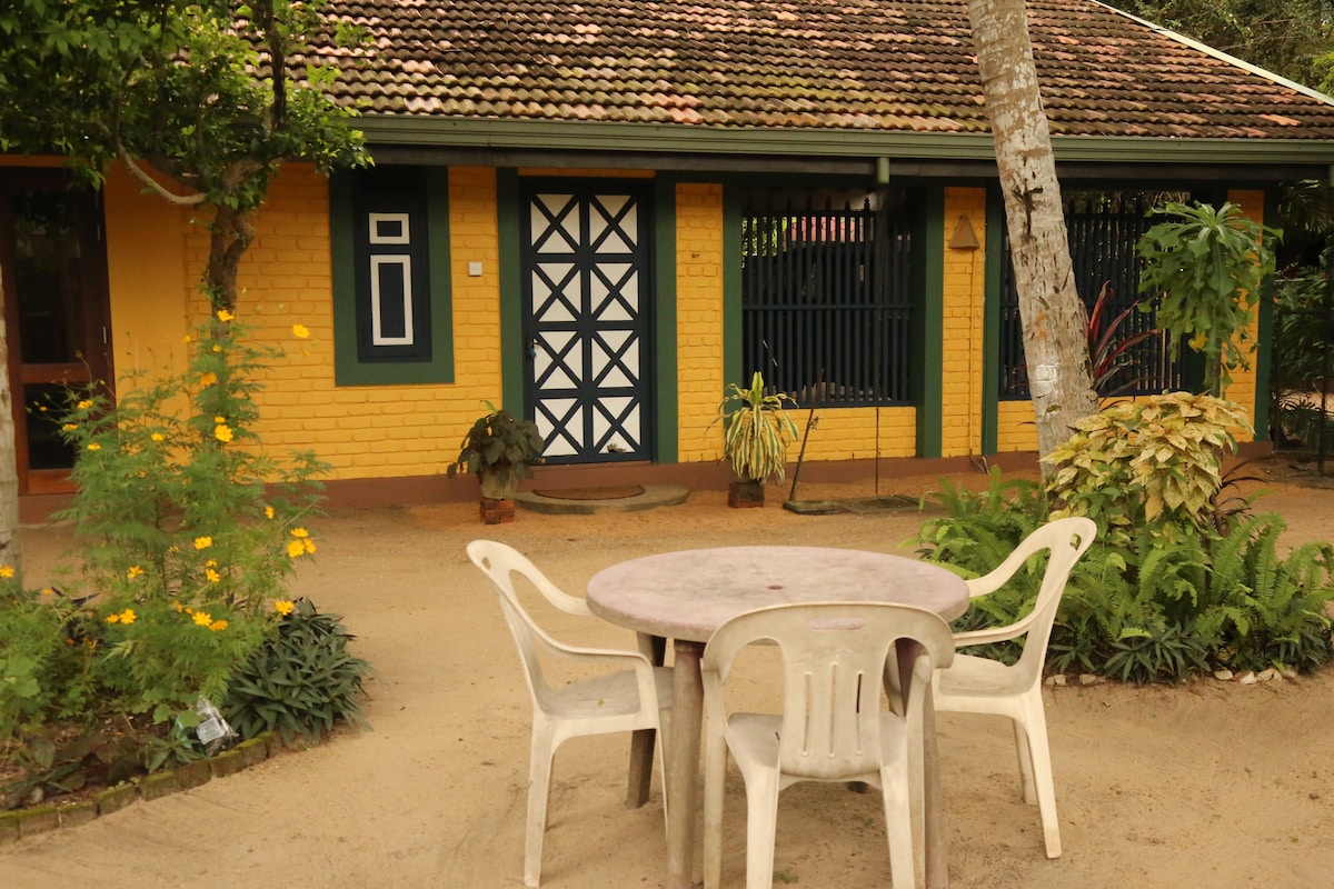 Šiame privačiame mikroname, esančiame vešliame kokoso ir cinamono plantacijoje netoli Kolombo oro uosto, netoli Negombo miesto, yra belaidis internetas, oro kondicionierius, karštas vanduo, pusiau lauko dušas ir patogi lova su kokybiška patalyne. Mėgaukitės pasivaikščiojimais po kaimą, pasivažinėjimais dviračiais ir ramybe su visą parą dirbančiu prižiūrėtoju. Puikus gamtos, komforto ir autentiško Šri Lankos žavesio derinys — ramūs namai toli nuo namų. Vieta apsistoti yra tikrai išskirtinė. Į kambario kainą įskaičiuoti tradiciniai Šri Lankos pusryčiai.