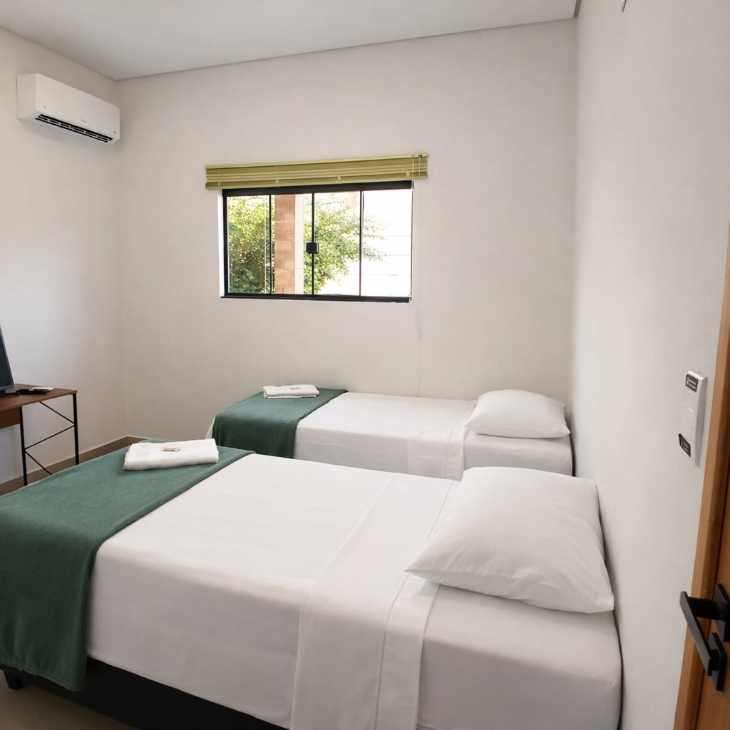 🏡 Situado em bairro nobre, acesso fácil aos principais pontos da cidade! 2 camas solteiro super confortáveis, suite com banheiro, ar-condicionado, Wi-Fi rápido, Smart TV e frigobar. Espaço recém reformado tudo novo! 🚗 Garagem exclusiva grátis! Entrada independente lateral: total privacidade e segurança. 🐾 Pet friendly (taxa extra). ⚠️ Acesso escada, balcão para refeições com itens básicos. Ambiente familiar muito acolhedor! 🛏️Venha se hospedar conosco e relaxar neste refúgio especial!