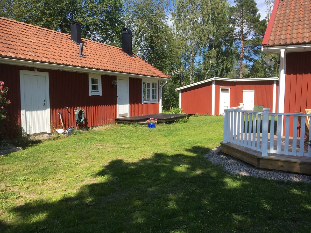 Jaukus kotedžas su rūsiu, įsikūręs žaliuojančiame sode su vaismedžiais. Viršutiniame aukšte yra atvira erdvė su virtuve ir svetaine su sofa-lova. Taip pat yra tualetas su skalbimo mašina ir džiovintuvu. Miegamasis yra pirmame aukšte, žemiau laiptų, su dušu ir pirtimi, išėjimu į didelę terasą ir netoli upės. Netoli autobusų stotelės su geru susisiekimu. Gävle centras yra už 40 minučių pėsčiomis per gražų parką palei upę.