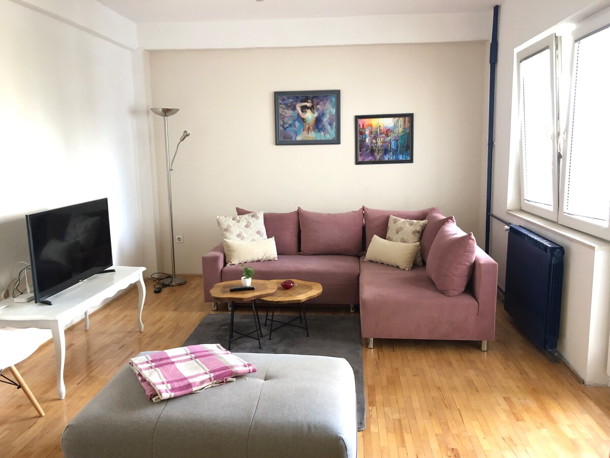 Mūsų ką tik atnaujintas ir rekonstruotas butas yra viskas, ko galite tikėtis užsisakydami atostogas mieste. Butas yra antrame aukšte su liftu. Kadangi esame labai praktiškoje, bet centrinėje Skopjės vietovėje, viskas bus lengvai pasiekiama. Aplink pastatą yra daug restoranų, barų, kavinių. Tai puikus pasirinkimas pavieniams keliautojams, draugams ar poroms.