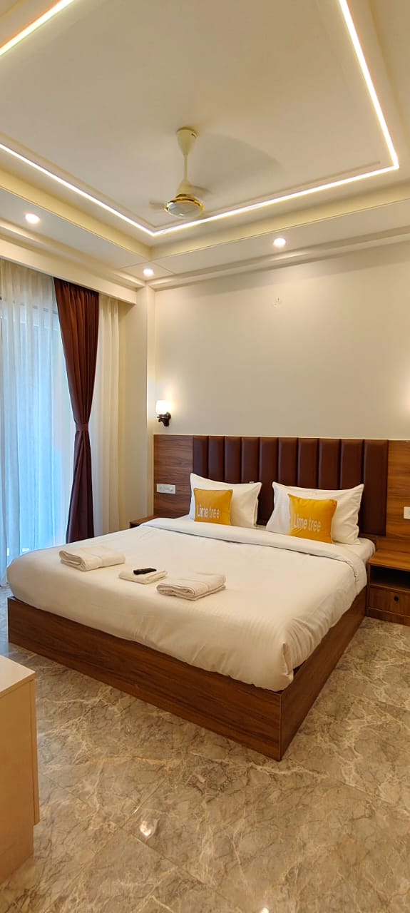 Rhythm by Lumen Leaf Wake up to serene sunrise views over the Aravalli Hills and unwind as the city skyline glows at sunset. This luxury suite blends modern elegance with cozy warmth — featuring a king bed, sofa-cum-bed, elegant bar cart, ambient lighting, and chic décor. Designed for both relaxation and celebration, it’s party-ready yet peaceful, offering modern amenties, and curated details that make every corner photo-worthy. Located just 5 mins from Worldmark Mall and 20 mins from Cyber City