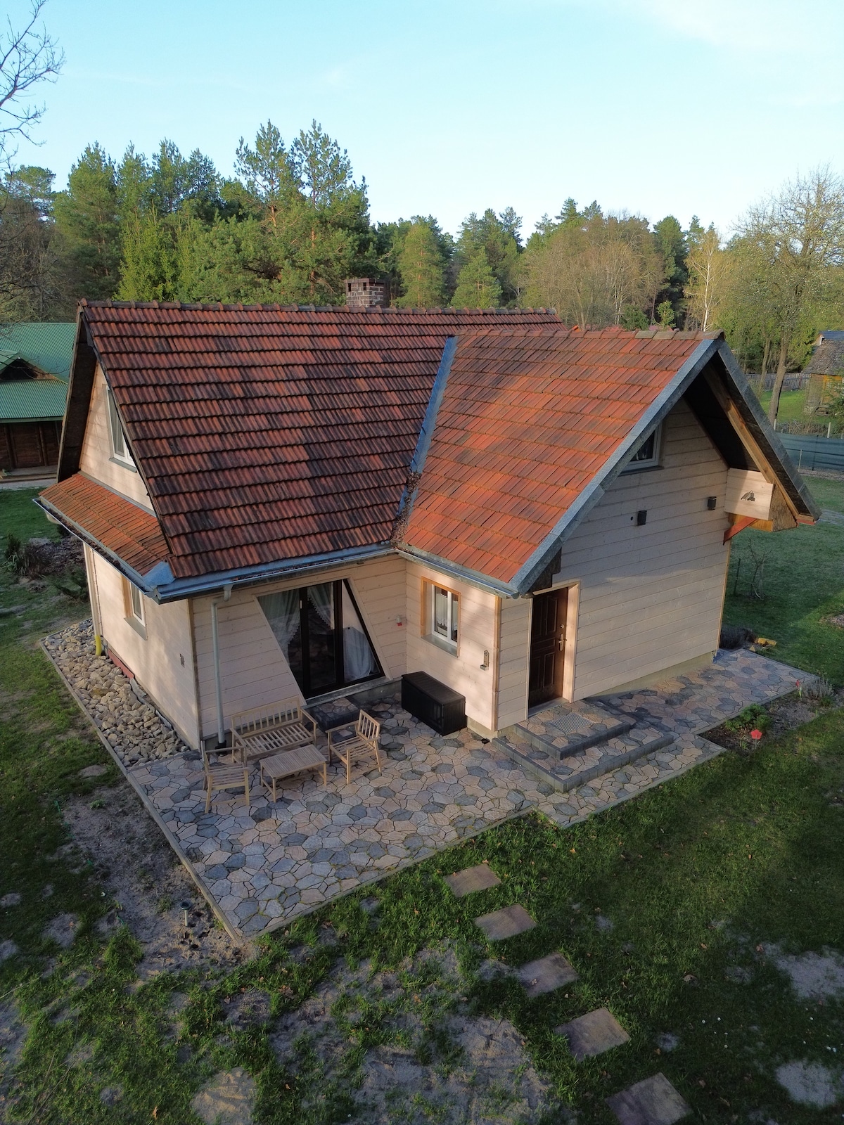 Chcesz odpocząć, zrelaksować się w ciszy i spokoju przy kominku lub ognisku? Dobry wybór! Domek otacza piękny, czysty las z licznymi dróżkami na długie spacery. W sezonie można rozkoszować się grzybobraniem a zimą urokliwym widokiem. W lecie skorzystasz z lokalnych usług kajakowych lub zrelaksujesz się nad Zalewem zlokalizowanym 10-15min spacerem od domku. Na terenie domku znajduje się drewniana balia ogrodowa na wyłaczność, w której zrelaksujesz po długich leśnych spacerach. Zapraszamy :)